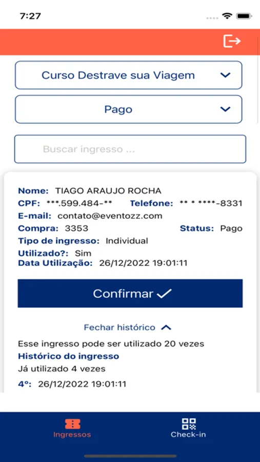 Aplicativo destinado a organizadores de eventos que disponibilizam ingressos do seu evento através da plataforma de vendas Eventozz. Com o aplicativo é possível ler o Qr Code na entrada dos eventos e informar a utilização dos ingressos