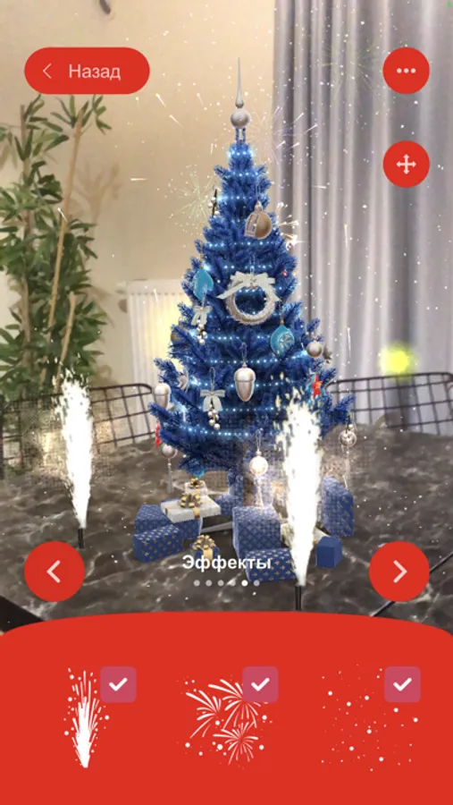Инструкция: с помощью камеры смартфона определите место расположения ёлки, нарядите ёлку игрушками, используя подсказки на экране, отправьте любым удобным способом своим друзьям.