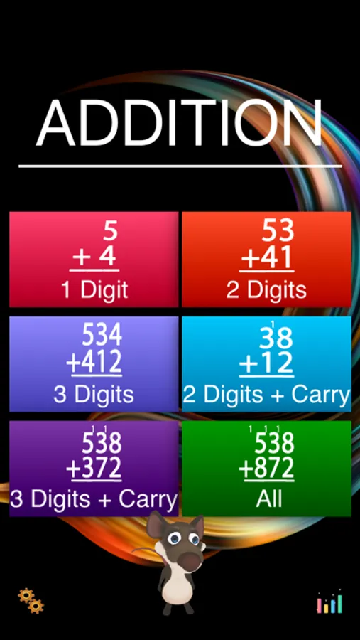ADDITION is a smart math app that teaches children how to add multi-digit numbers together. It monitors what the student knows and where they still need practice. It teaches step-by-step how to add small numbers and then progresses to multi-carry addition. ADDITION is encouragement-based providing positive reinforcement for the student's effort both visually and auditorily. The student, parents, and teachers can all quickly see where the student needs more practice in a color-coded format.
