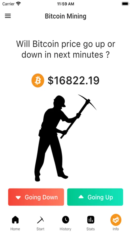 Make a choice whether the Bitcoin price will fall or rise within the next few minutes.