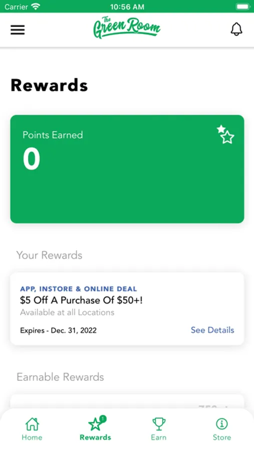 The Green Room Rewards App - Earn and track your rewards at participating stores