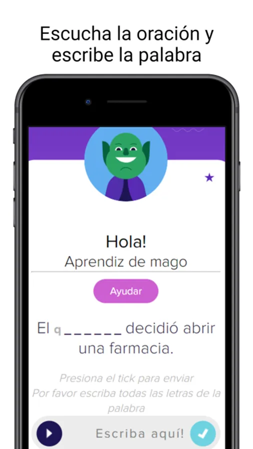 Ayudamos a los niños de primaria a aprender a deletrear. Todas las ortografías están rodeadas de oraciones relevantes que proporcionan el contexto. Presiona reproducir, escucha la voz, escribe la ortografía.