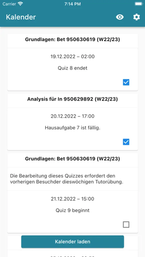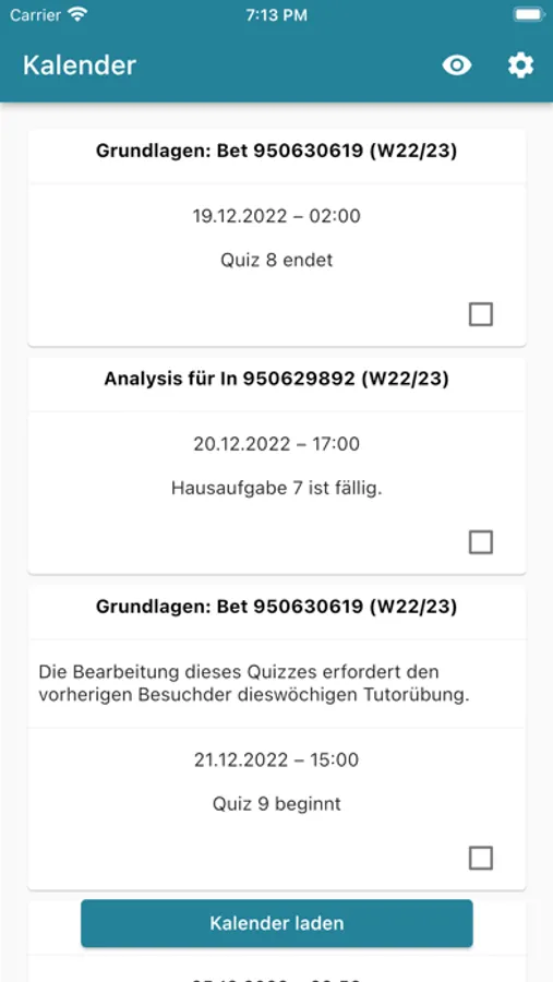 Diese Anwendung fasst die nächsten Abgaben auf Moodle zusammen.