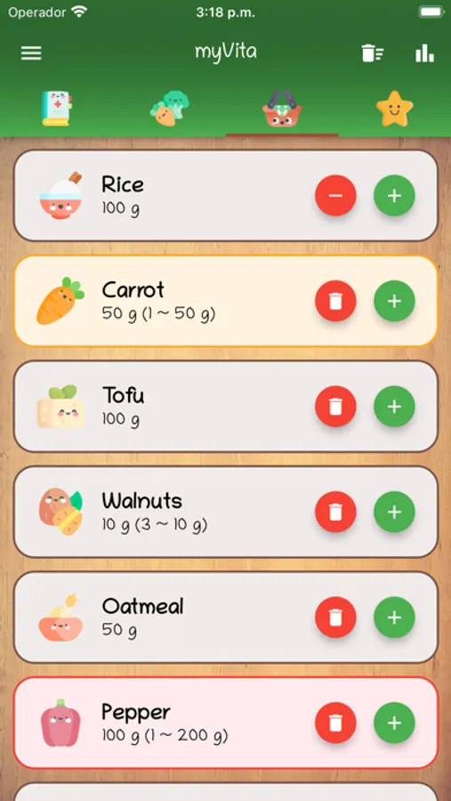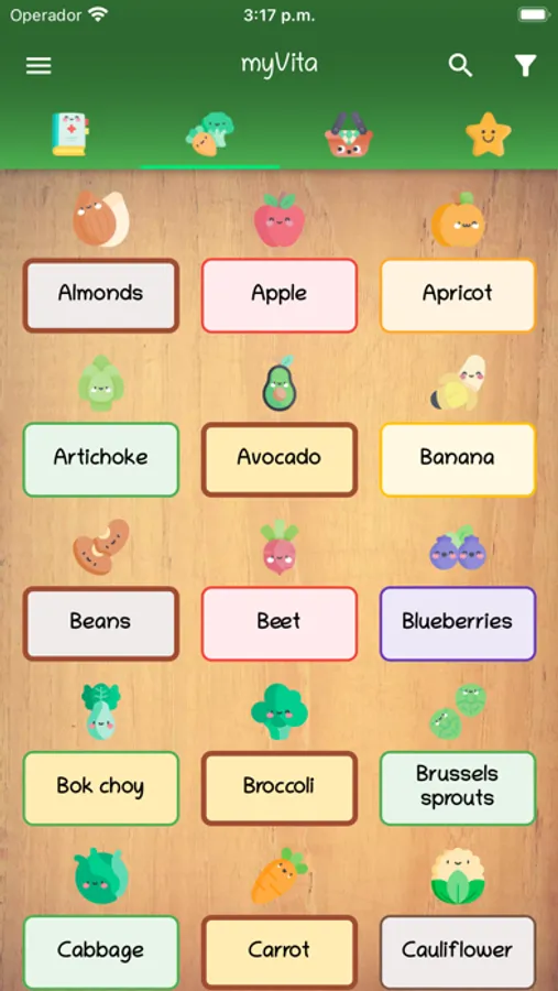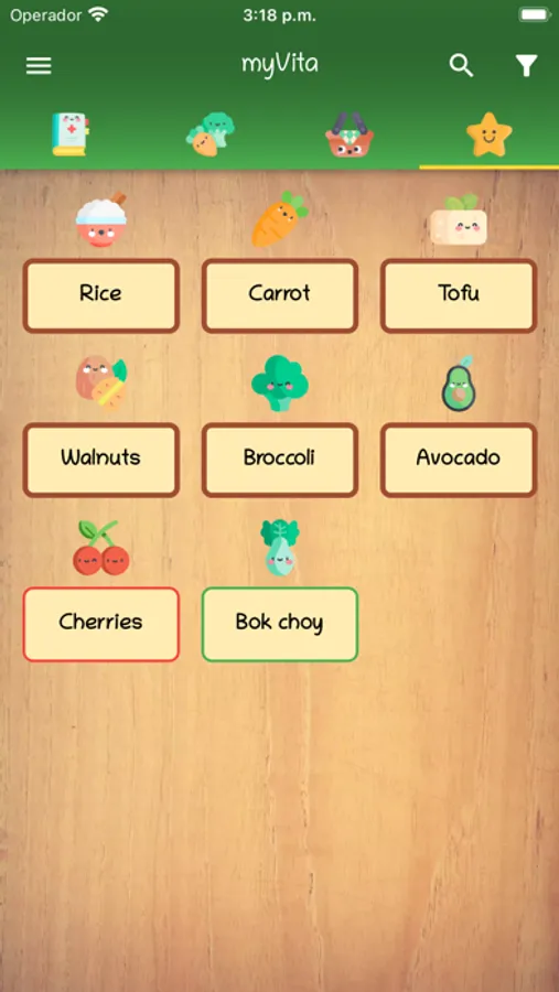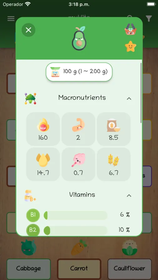 A simple tap on a food will open its nutritional information, you can also know some curiosity about the food by tapping on its image and add it to the 'basket' or 'favorites'.
