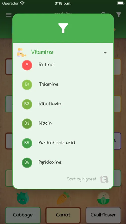 In the upper right corner you can open the nutrient filter to find quickly richest foods according to the chosen nutrient.