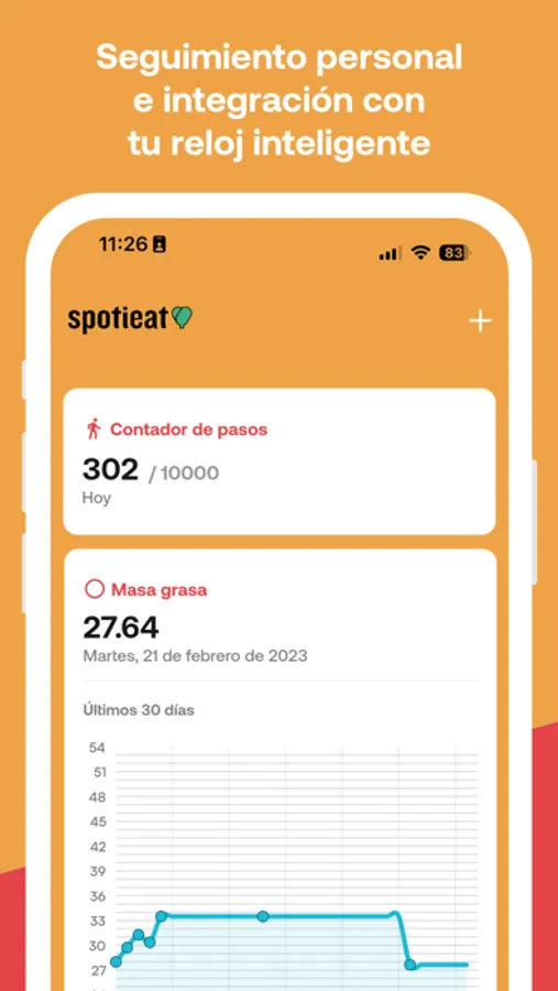 Integramos HealthKit con Spotieat para que puedas ver los pasos realizados en tu día a día y así veas la evolución de tu actividad física.