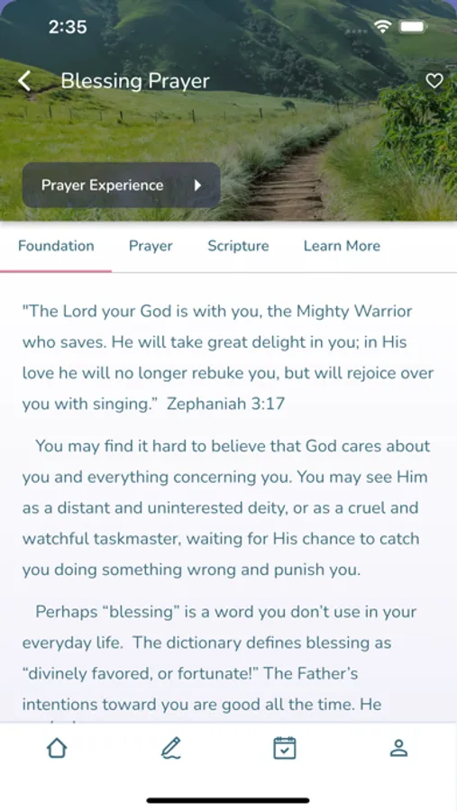 - A Prayer Library, fully available both in English and Spanish. Each prayer contains: the text of the prayer, the foundation of the prayer, the scriptural references for each prayer, and what we call Prayer Experience - an immersive feature to dive into each prayer through an audio recording.