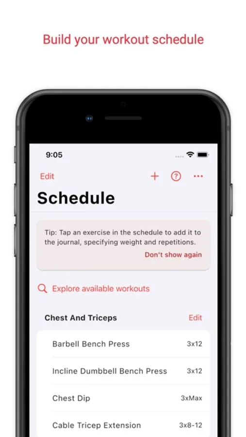 Gym Journal allows you to build a workout schedule and track your workouts at the gym.