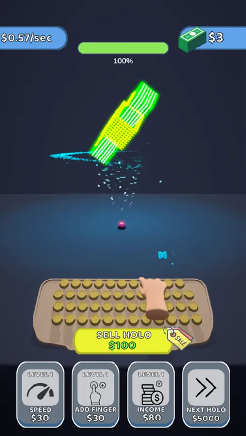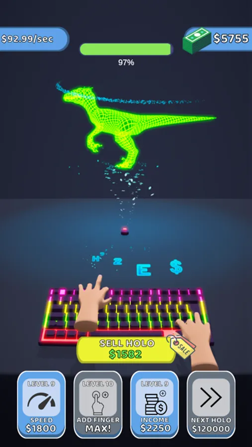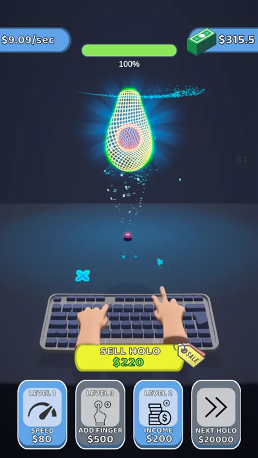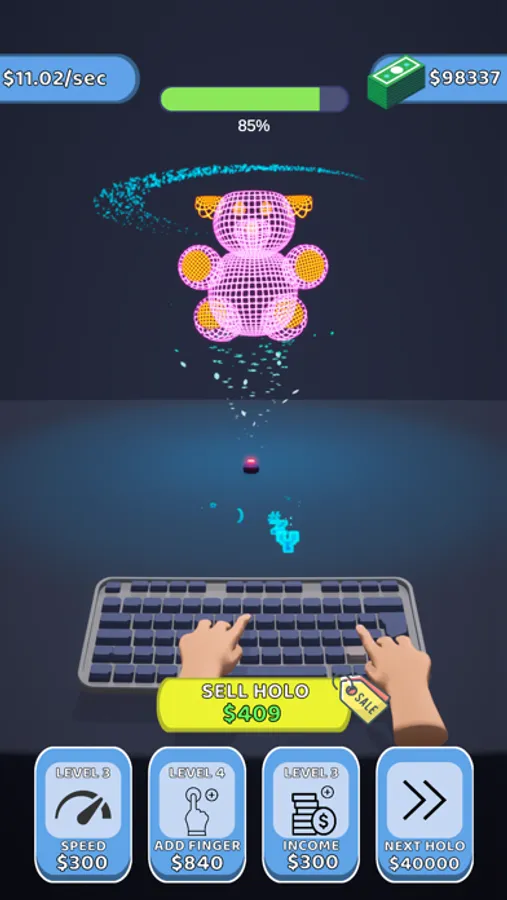 Create your own hologram by pressing the keyboard and sell it. Many kinds of keyboards and many hologram figures are waiting for you to discover them.