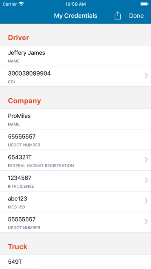 This application provides you with a mobile electronic "wallet" that can store the documents needed to compliantly operate an assigned commercial motor vehicle. Driven by ProMiles, this app safely keeps your documents in one organized, easy to access electronic file. No paper, no searching for your documents and credentials. Simple, easy, and comprehensive. The ProMiles way.