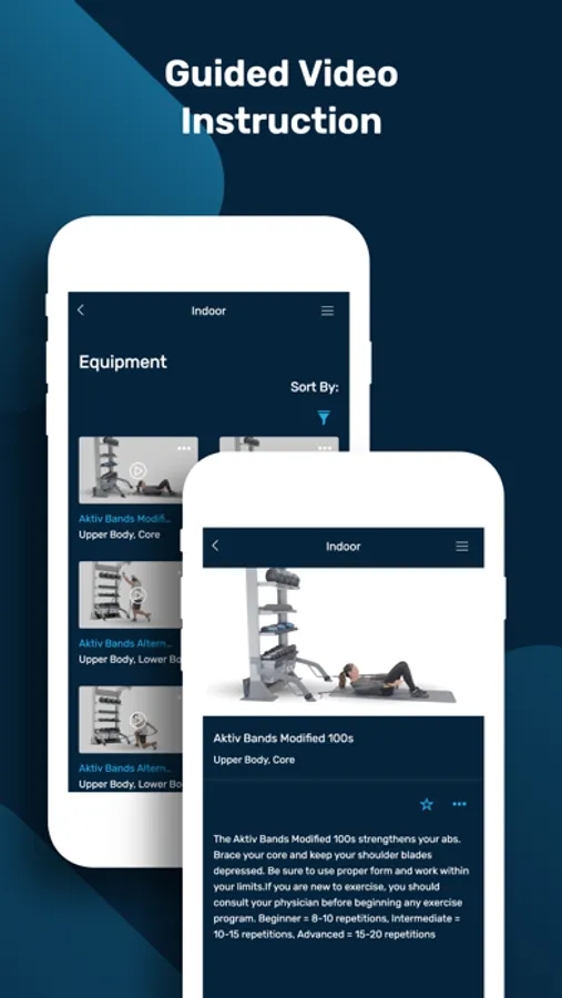 Within the app, you can sort exercises by equipment type or bodyweight. Exercises feature unique products from Aktiv, like Aktiv BANDS, Aktiv STRAPS, & Aktiv AQUA. This app also includes exercises with dumbbells, kettlebells, medicine balls, stability balls, power bands, mini bands, foam rollers, massage ball, plus much more!