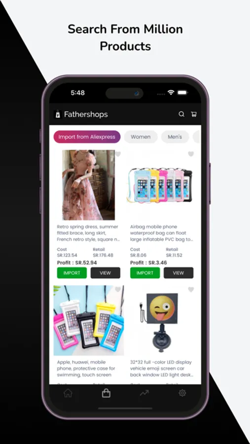 Fathershops mobile app is now available, ensuring that you have complete control over your business anytime, anywhere. Enjoy features like order processing, tracking, catalog management, and wishlist options, all in the palm of your hand. With different product categories to choose from, you can import and sell products seamlessly through your Fathershops store.