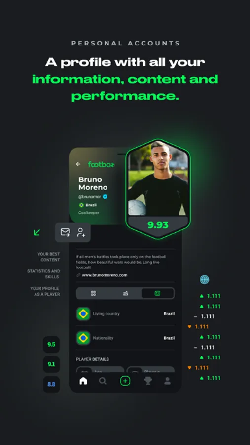 On footbao you can like, comment, share content, gain relevance and be discovered either by other users or even by brands and national and international teams.