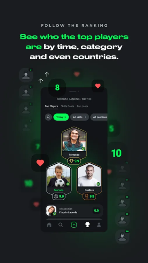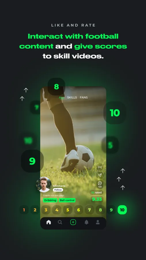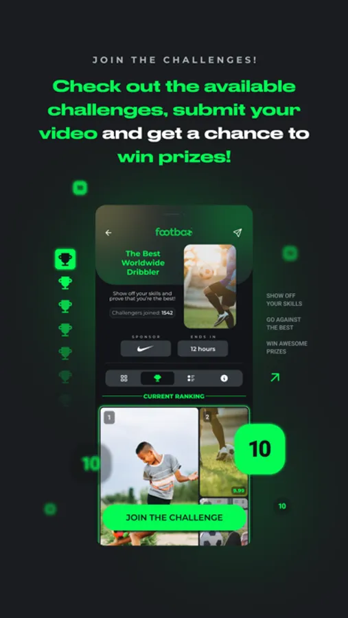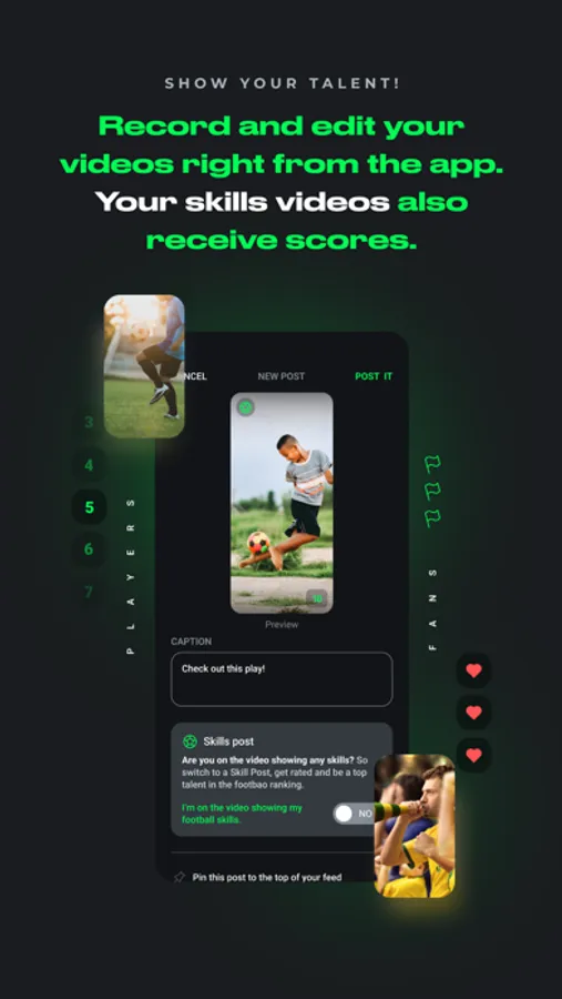 Do you want to post as a player? Then create videos with your best plays and showing off your skills. And after, with this content of your own, you can receive scores and start entering an international ranking of great soccer talents.