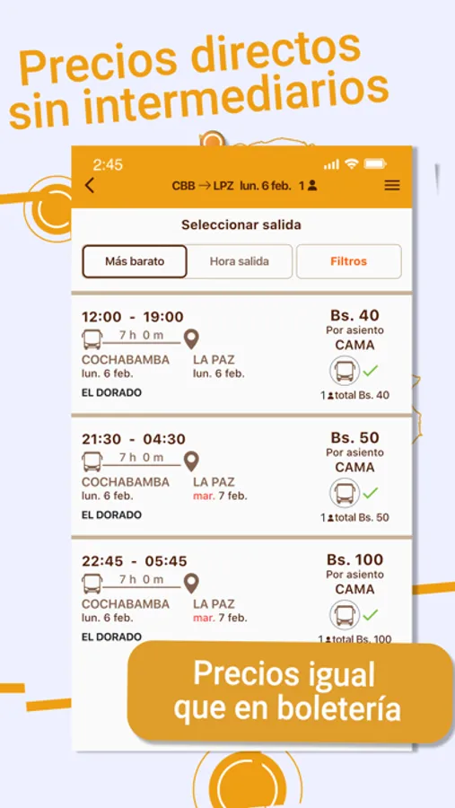 Ofrecemos precios directos, la opción de elegir tus asientos en línea y múltiples