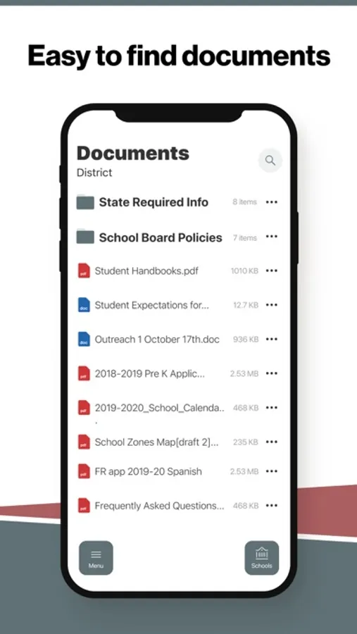 The event section shows a list of events throughout the district. Users can add an event to their calendar to share the event with friends and family with one tap.