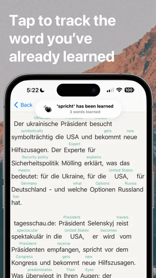- Tap on known words to hide translations