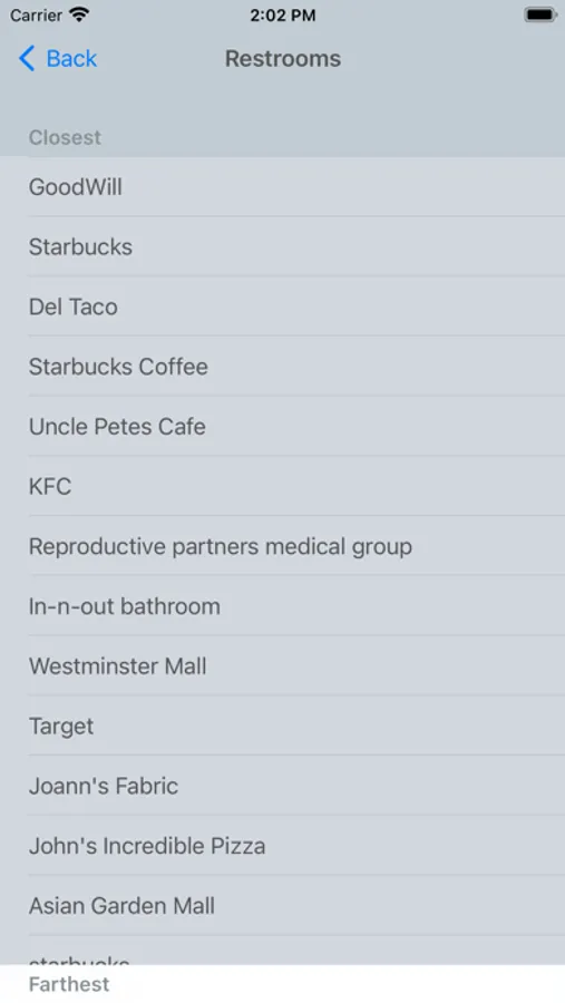 We know that finding a public restroom can be a stressful experience, especially when you're in a new place or on a long journey. That's why we've designed our app to be easy to use and highly functional. With our one button search feature, you can quickly and easily find the nearest public restroom, no matter where you are.