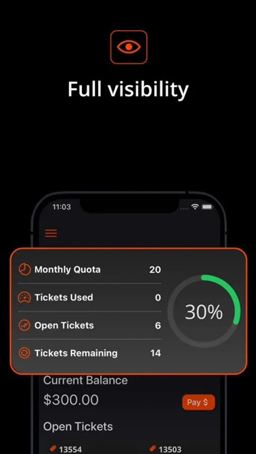 Managing your IT requests simplified. Get a birds eye view of all support metrics, including open tickets, monthly quota, and remaining tickets. Our app providing our customers to easily create and manage service requests as well as running reports and analytics. Need to pay for a request or project? Pay your balance right in the app!
