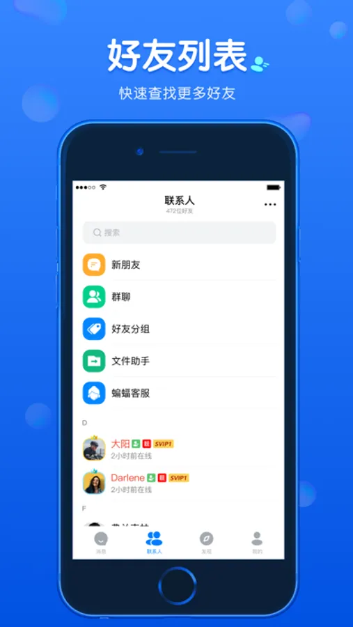 1、可对单聊/群聊自由创建多个消息分组列表,消息分组之后,可以更快速查看和回复好友消息,提高沟通效率