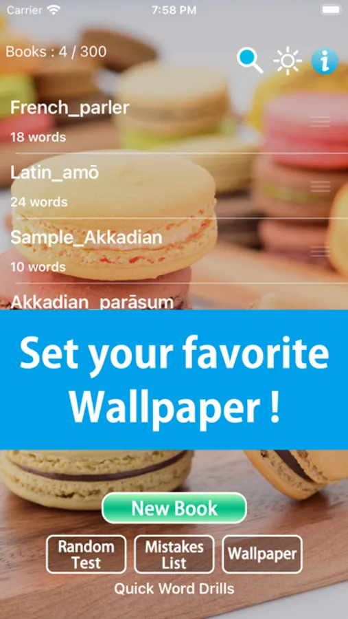 Randomized questions: The app will randomly open a wordbook and start the test.
