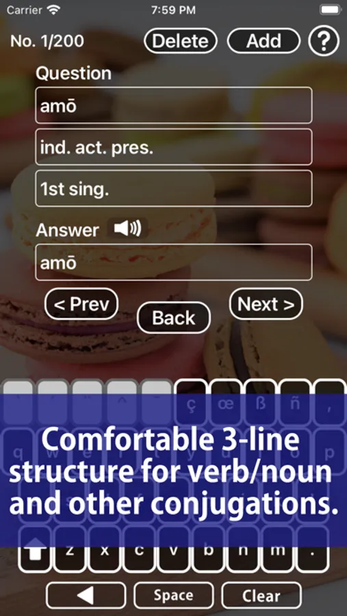 This is a flashcard application with a test function, specialized for memorizing nouns and verb conjugations in foreign languages. Several functions have been added to make learning comfortable, which tends to become monotonous. It supports not only English, but also multiple language input such as German, French, Spanish, Italian, etc.