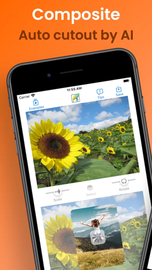 - Save composite photo to Photo Library : Enabled by in-app purchase