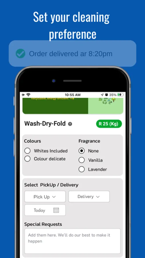 Introducing FoldMe, the laundry delivery app that simplifies your laundry needs. With just a few taps on your smartphone, you can have your laundry picked up, washed, and delivered right to your doorstep. No more hassles of carrying heavy bags of laundry to and from the laundromat or worrying about finding the time to do laundry.