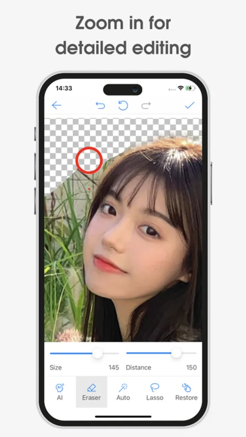 The brush's resizing feature, combined with image enlargement, allows you to precisely manipulate the perfect photos.