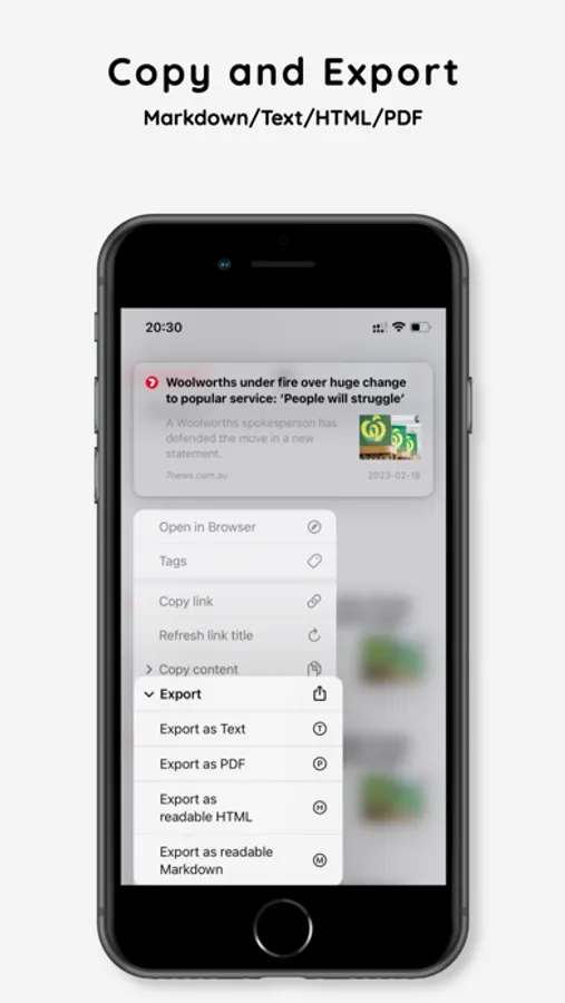 ReadWell is a bookmark management App that you can add links from everywhere, view original content or view in article mode, download and view them without the internet, highlight and write notes, copy and export as Text, HTML, Markdown, and PDF, and finally sync to third-party note Apps like Notion, etc.