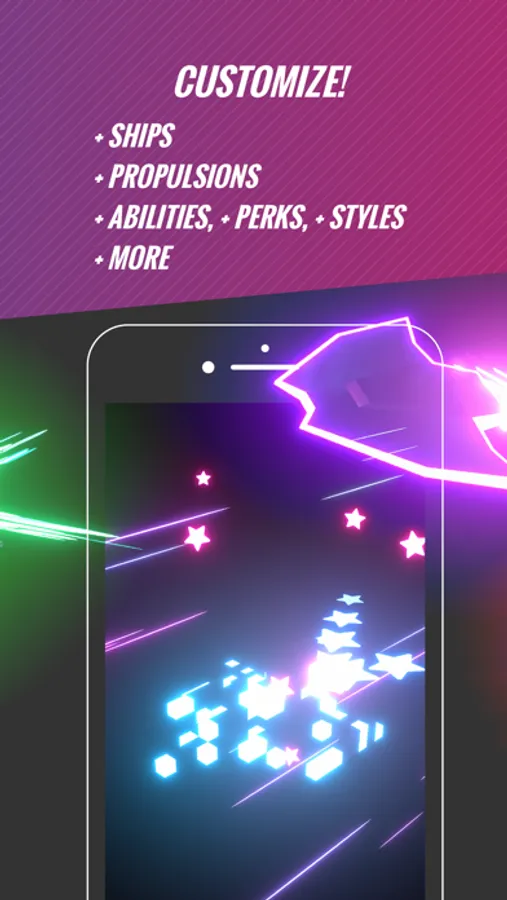Personalize your player ship and choose from a selection of colours as well as your propulsion effect.