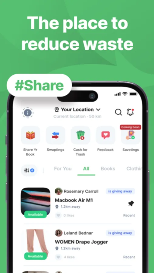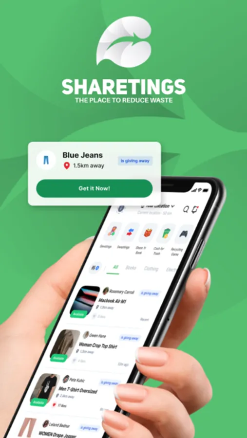 Sharetings is a hyper-local eco-tech peer-to-peer mobile platform that aspires to encourage individuals to be more environmental friendly by sharing/swapping/saving usable items instead of throwing or buying.