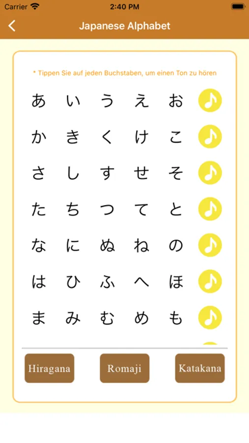 Diese Anwendung ist für Anfänger, um Japanische-Sprache auf Deutsch zu lernen.