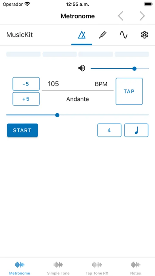This app contain three types of metronome or tone generator. The first is more complete with a lot of musical tones. Second and third are more simple if you need only a tempo reference.