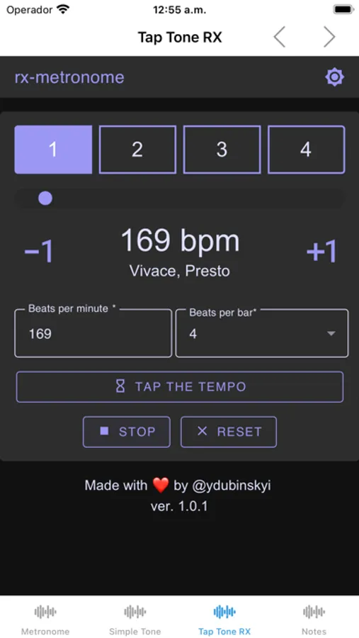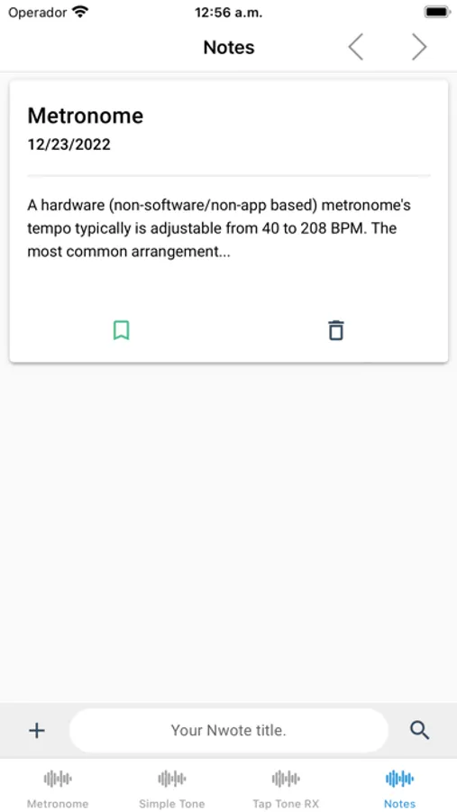Metronome(tone generate) is a device that produces an audible click or other sound at a regular interval that can be set by the user, typically in beats per minute (BPM). Metronomes may include synchronized visual motion. Musicians use the device to practise playing to a regular pulse.