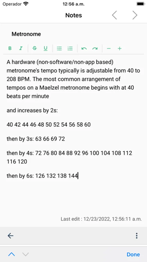 then by 8s: 144 152 160 168 176 184 192 200 208. Some digital metronomes allow adjustment to more precise tempos (e.g. increasing 120 to 121), but such a difference is hardly perceptible.