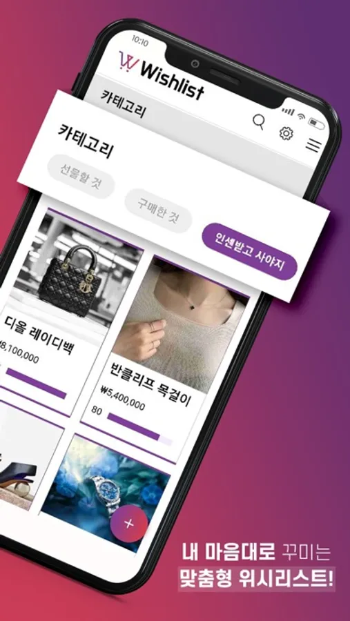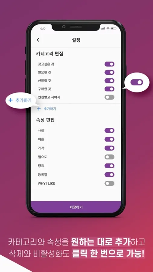 ■ 갖고 싶은 것, 필요한 것, 선물할 것 등 상품의 성격에 맞게 카테고리를 설장하여 관리할 수 있습니다. 본인이 필요한 카테고리는 추가하여 사용할 수 있습니다.