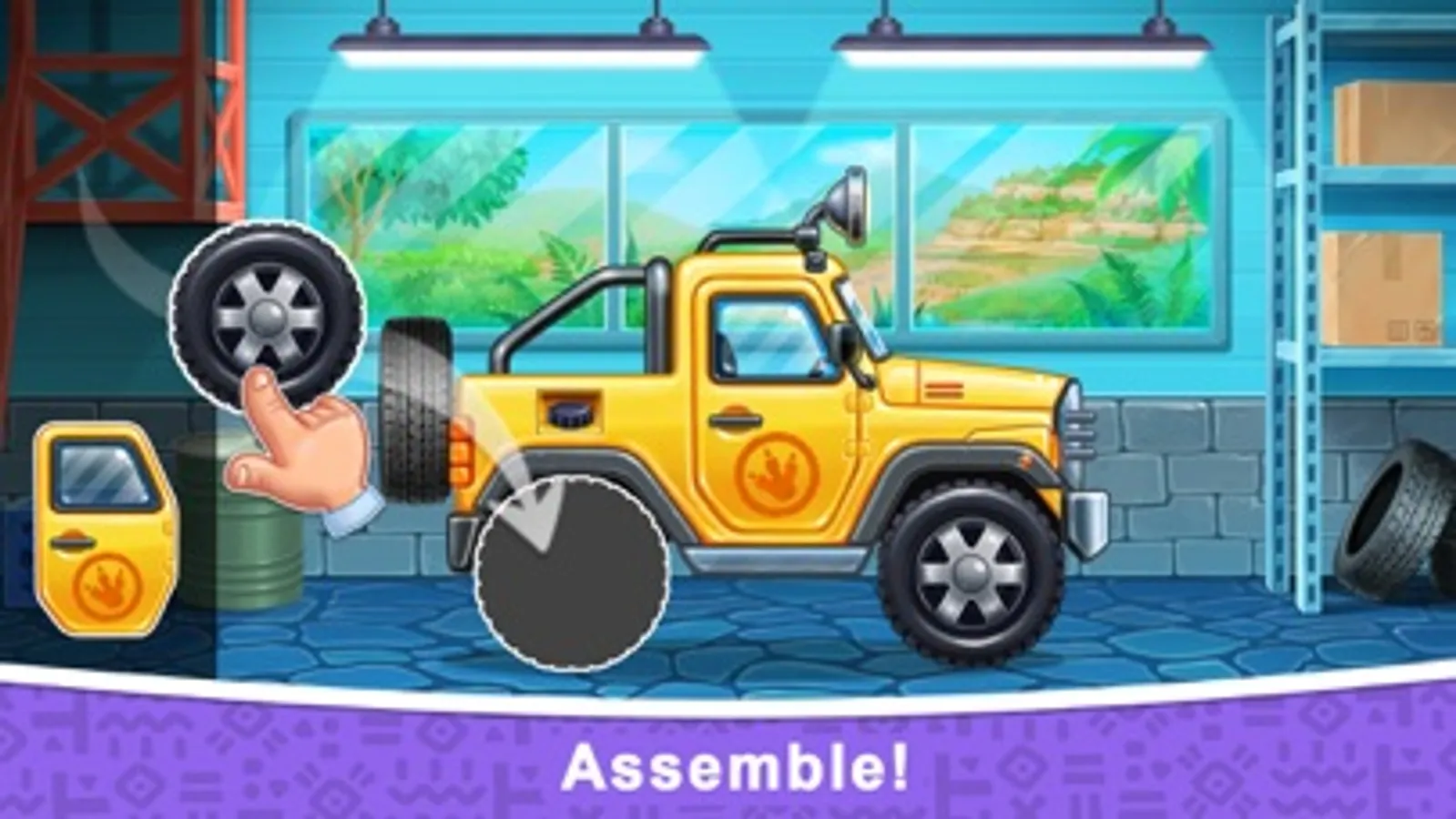 -Start by assembling cars - you will need them to get to the farthest places of our expedition. Build cars from puzzle pieces, fill them up at the gas station and head to the exploration site!
