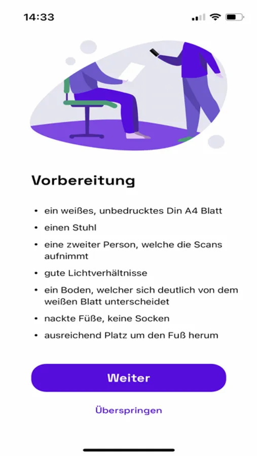 You've been waiting for this, we know that. The scan app has been tested and found to be good. Now you can take off your socks and give your feet the right measurements in a relaxed manner. You will be guided through the process in the app, it's very simple.