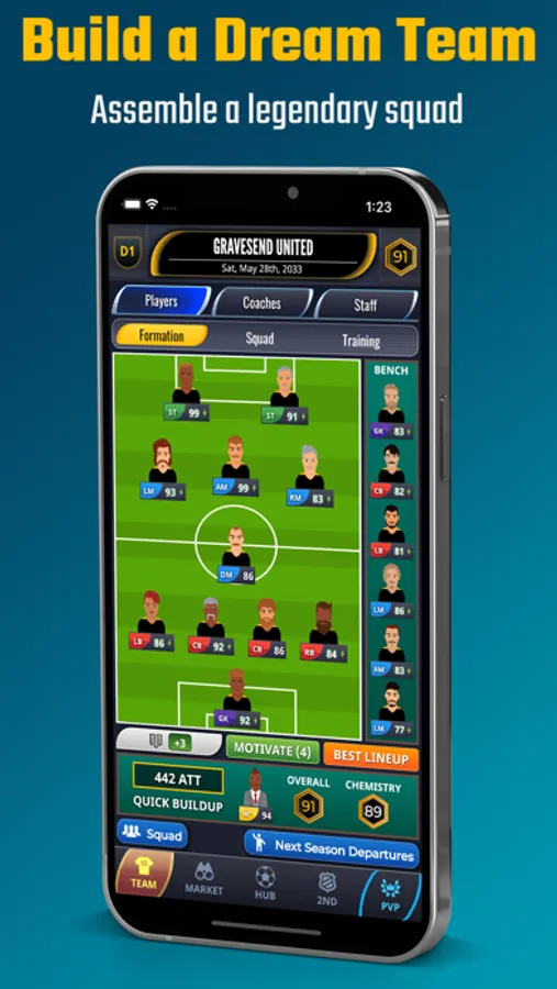 - Assemble a soccer dream team: sign and buy superstars.