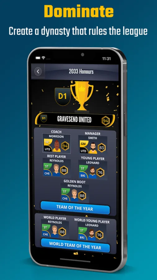 Fulfill your destiny and become a legendary football manager, and build a long lasting football club to rule the league.