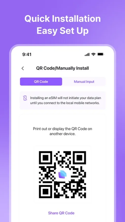 Step 3: Install the eSIM to your mobile phone through a QR code or activation code