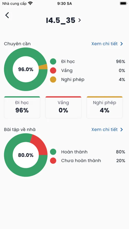 - Xem tổng quan tỉ lệ phần trăm sự chăm chỉ đi học của con mình