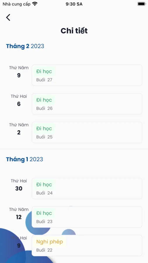 - Xem chi tiết thông tin đi học, vào muộn, vắng mặt của con ở từng buổi học.