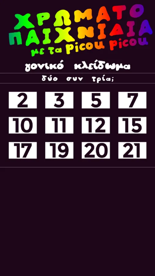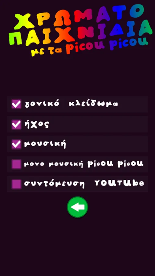 Τα picou picou είναι μικρά, χαρούμενα, παιχνιδιάρικα πλασματάκια που μέσα από μία σειρά δραστηριοτήτων, μαθαίνουν στα παιδιά τα χρώματα. Η εφαρμογή περιλαμβάνει την εκμάθηση των βασικών χρωμάτων, τις ιδιότητες των χρωμάτων, τις μίξεις τους, παιχνίδια κατανόησης και αξιολόγησης γνώσεων. Μέσα από την εφαρμογή «Χρωματοπαιχνίδια με τα picou picou», τα παιδιά εξασκούν την λεπτή κινητικότητα, την λογική σκέψη αλλά κυρίως διασκεδάζουν.