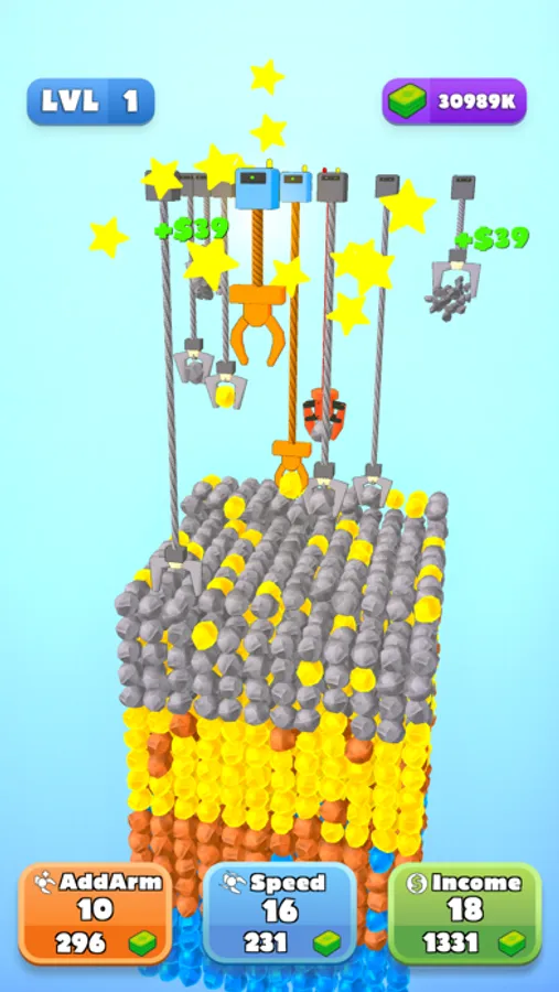 Use your robotic arms to mine and collect precious minerals and gems. Unlock new arms, merge them and become stronger than ever! Do you think you can collect every gem and reach the center of the world? There are hidden treasures there!!