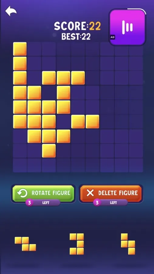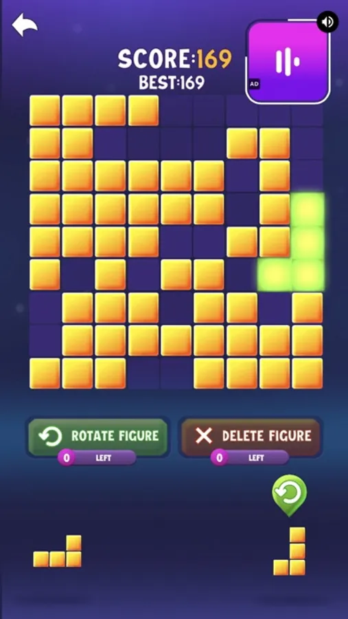 - Got stuck? Listen to a Rewarded Ad to rotate or remove one of the offered blocks