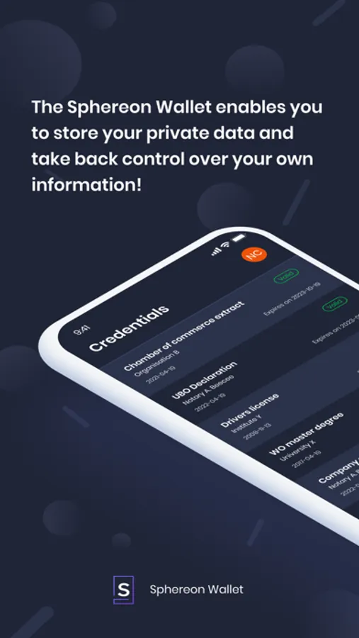 The Sphereon Wallet is a new breed of open, privacy-preserving applications, that gives you full and sole control over your own information. It enables you to manage your own data.