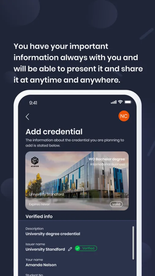 Built based on open W3C Verifiable Credentials standard it guarantees interoperability with other systems to receive and share data.