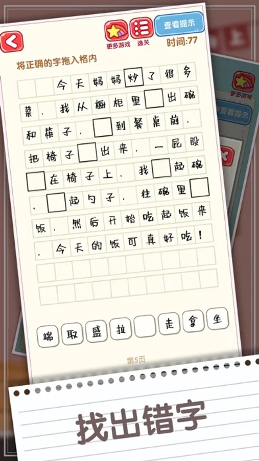 这是一款寻找错别字的游戏,游戏以休闲娱乐的玩法和简单的操作来帮助您避免错字,游戏操作简单只需要在给出的一篇文章中找到错误的那个字即可过关,游戏虽然简单但富有挑战性,让我们来试试看吧。